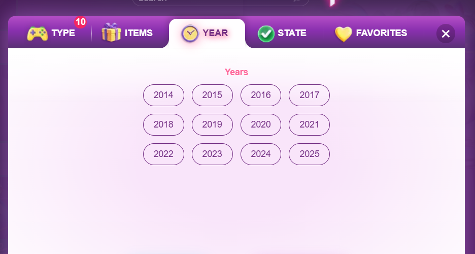 - progress - won/purchased items from event/collection